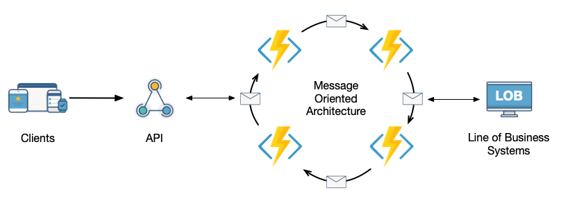 The MOAR architecture fits best in front of your line of business applications and behind an API. It is a backend architecture that helps you connect systems together, handling high load and while being easy to maintain.